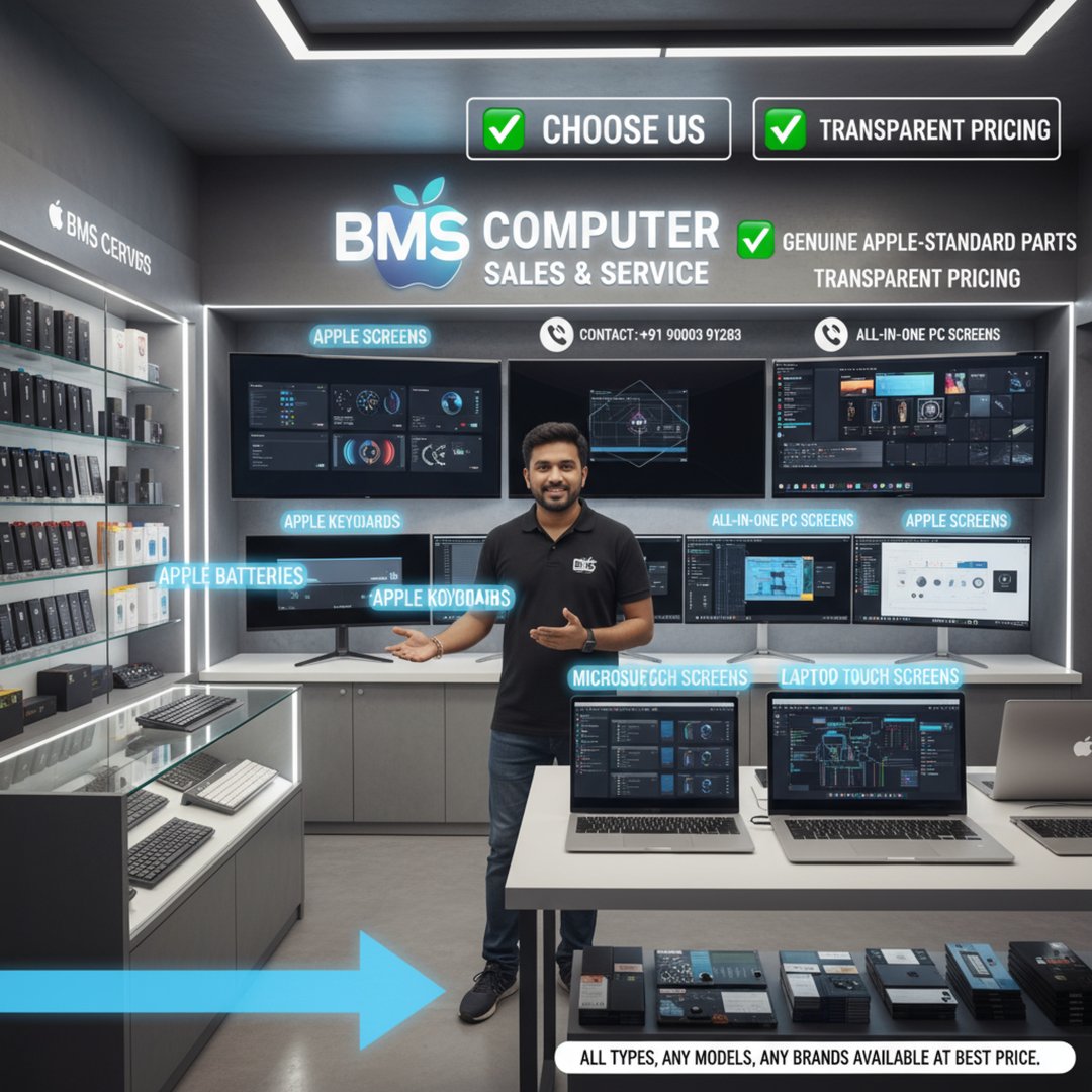 BMS Mobile & Laptop Service Center is your reliable source for mobile phone and computer solutions in Hyderabad. We serve individuals and businesses, providing expert mobile repair and computer services including sales, repairs, and wholesale options. Choose us for our commitment to quick, affordable service using genuine parts. We offer high-quality mobile accessories and computer accessories, standing out as the available iPhone repair shop store you can trust. Prioritizing reliability and price transparency, we ensure your satisfaction. Contact BMS Mobile & Laptop Service Center today for a free quote.